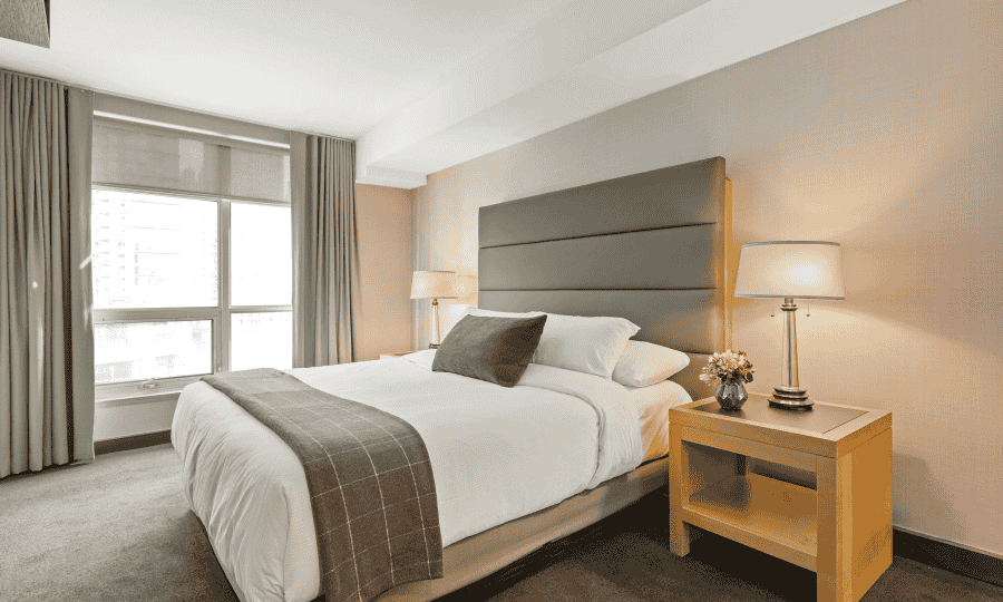 For those needing additional space, the room includes a separate seating area that’s perfect for informal meetings or brainstorming sessions. The en-suite bathroom features a walk-in shower, luxurious toiletries, and soft towels for a refreshing experience.